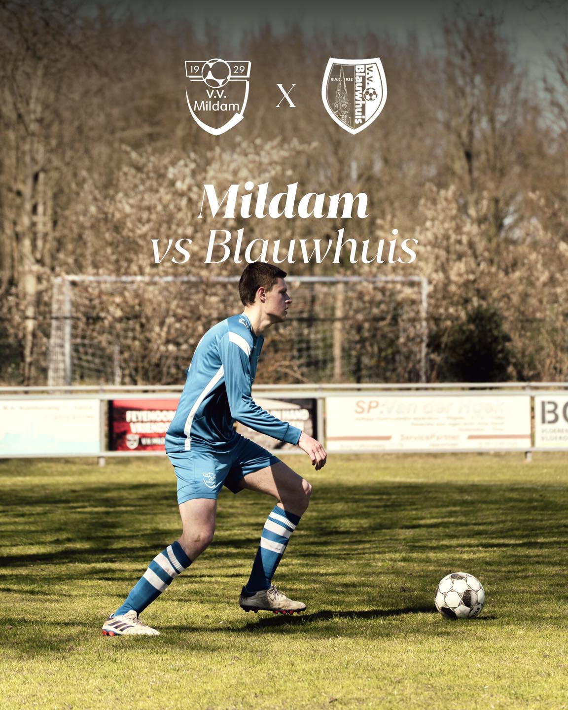 Na twee zeges op rij mocht Mildam 1 vandaag opnieuw aantreden op eigen veld. De tegenstander: Blauwhuis 1, altijd lastig, zeker op een regenachtige zondag waar de bal soms meer gleed dan rolde. Maar goed, regen of niet de mannen van Mildam hadden er zin in. De pupillen van de week, Thies en Jesse, mochten het spits afbijten met hun doelpuntje vooraf en brachten meteen geluk.
